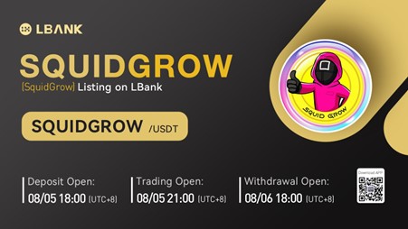 INTERNET CITY, DUBAI, Aug. 5, 2022 – LBank Exchange, a global digital asset trading platform, has listed SquidGrow (SQUIDGROW) on August 5, 2022. For all users of LBank Exchange, the SQUIDGROW/USDT trading pair is now officially available for trading.