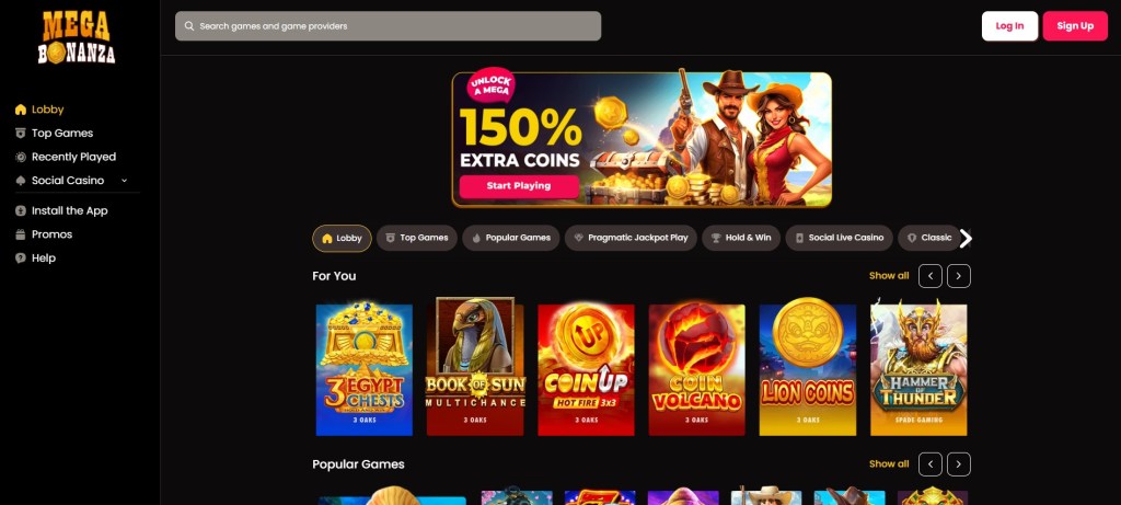 - Mega Bonanza – A rising star in the sweepstakes casino scene, Mega Bonanza impresses with polished graphics, strong welcome offers, and frequent prize-winning chances.