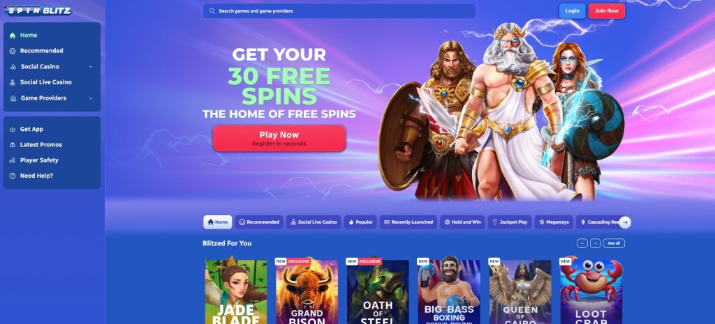- SpinBlitz – blends mission-based gameplay with high-energy slot features, making it a fresh and competitive entry in the sweepstakes casino space.