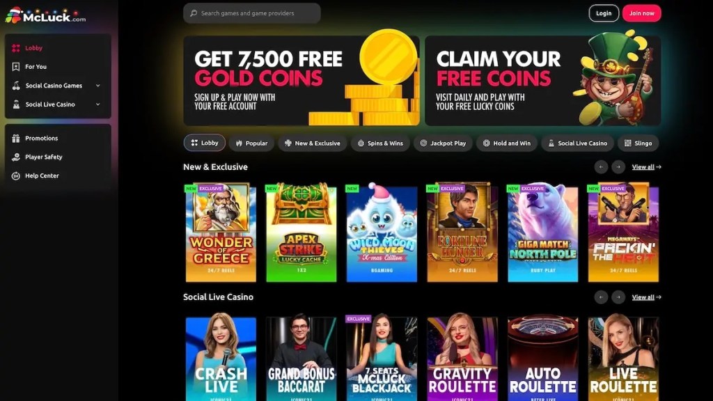 - McLuck – One of the most recognizable names among sweepstakes casinos, McLuck stands out with exclusive games from top studios and a smooth redemption system. Ideal for those who enjoy variety and simplicity, McLuck is frequently ranked as a top rated sweepstakes casino due to its generous bonuses and rewarding loyalty program.
