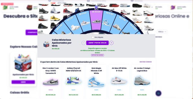 A plataforma transforma a experiência de compra em algo divertido e inesperado: você escolhe a caixa, vê as chances reais de cada prêmio, gira a roleta e descobre na hora o que ganhou. E o melhor? Sempre leva alguma coisa — de um acessório útil a um Jordan desejado.