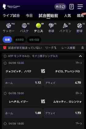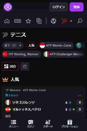 オンラインカジノでの入出金の詳細な手続きは各サイトで確認しましょう。 - テニスの試合を選ぶ:サイト内のスポーツメニューから「テニス」を選択し、賭けたい試合を探します。