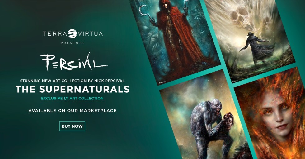 London, UK, 21 April 2022: Award-winning British fantasy artist Nick Percival has partnered with the sustainable metaverse and digital collectibles platform Terra Virtua, to create a supernatural-themed artwork collection of four non-fungible tokens (NFTs), available from today.