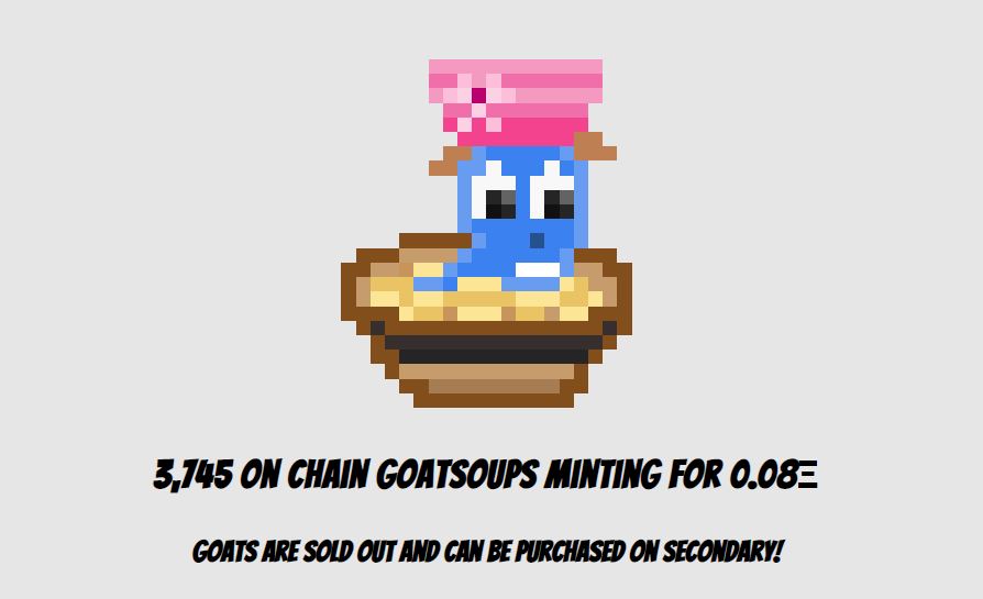 The project is fully on chain/ethereum, a lot of projects use terms that makes you think it's on chain, but really the image is stored on some random server. The reason why Goat Soup is pixel art is because the nfts actually exists on the block chain and there are size limits