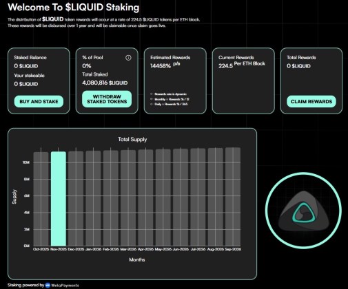 LiquidChain offers staking options that support validator activity and network stability. Current estimated rewards are listed at over 14,000% in early stages, according to the project’s data. Staking helps secure transaction flow and maintains validator engagement across the system.