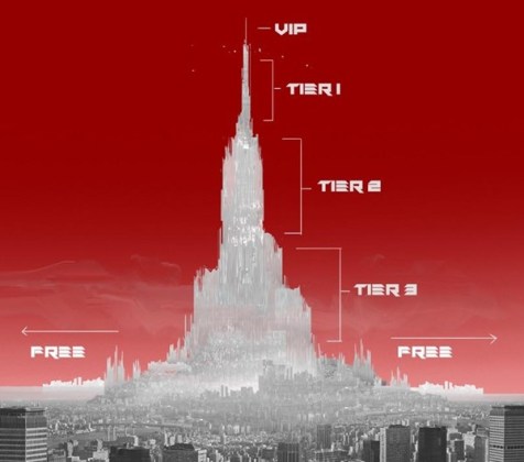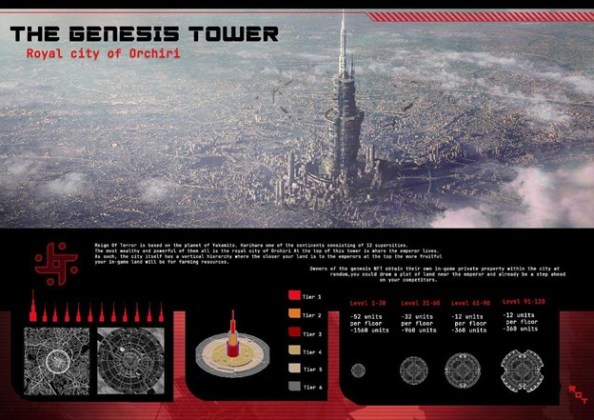 High and VIP tiers at the top of the high tower are more valuable — since it has fresher air, richer minerals and proximity to the power at the top of the tower — than the free barren wasteland on the surface. Wealth can be built up through the land resources, and other NFTs.