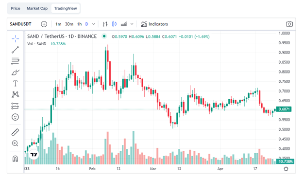 However, lately, The Sandbox (SAND) has been struggling to maintain its user base. Santiment’s data shows that The Sandbox (SAND) has been unsuccessful in mustering up 1,000 daily users since March 31st 2023.