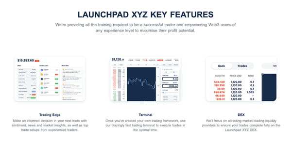 The Launchpad XYZ features cover a wide spectrum of crypto sectors such as NFTs, fractionalized assets, utility tokens, and Web3 presales. Some of the key components of the ecosystem are an NFT marketplace, a hub for play-to-earn gaming, a repository of metaverse experiences, a Web3 wallet, an NFT decentralized exchange, and a trading terminal.