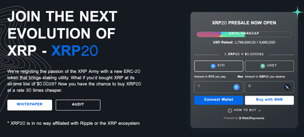 Another interesting aspect of the project is its low price and low initial market cap, allowing early investors to make the best of its journey ahead. Similar to Bitcoin Cash and BTC20, XRP20 has fuelled excitement in the market and is on its way to an early presale sell-out now.