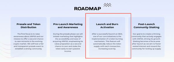 XRP20 also has a deflationary mechanism in place, which allocates 0.1% of each buy and sell transaction to a burn address. It reduces the supply of XRP20 and increases its scarcity over time. Burning and staking mechanisms, together impart sustainability to the project.