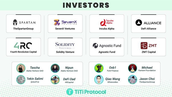 [Singapore], April 11, 2022 – TiTi protocol announces a successful fundraising round of $3.5 million, led by Spartan Group, with participation from SevenX Ventures, Incuba Alpha, DeFi Alliance, Agnostic Fund, Fourth Revolution Capital (4RCapital), Solidity Venture, and other institutions, as well as other individual investors including 0xb1 (Fold Finance), Tascha and Nipun (Alpha Venture DAO), and Michael (Fantom). The project was incubated by Alpha Venture DAO. With this latest funding, TiTi Protocol aims to work with world-class investors to build the future of DeFi.
