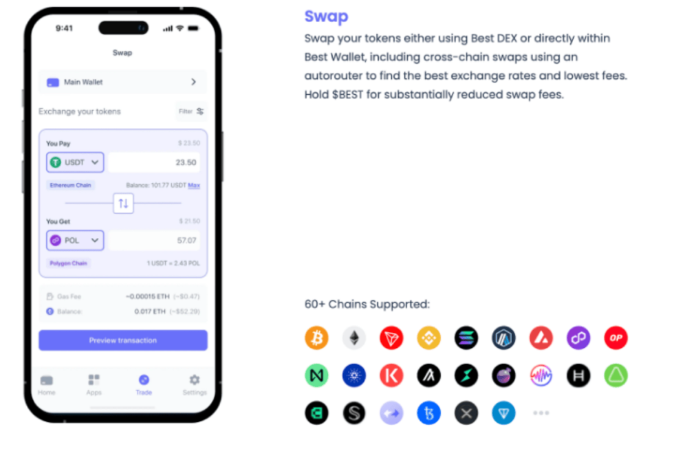 Αν διαχειρίζεσαι assets σε πολλαπλά πορτοφόλια, το Best Wallet προσφέρει εύκολη εισαγωγή και ενοποίηση. Υποστηρίζει ήδη multichain λειτουργίες και πρόσφατα πρόσθεσε υποστήριξη Bitcoin, με το Solana να ακολουθεί σύντομα.