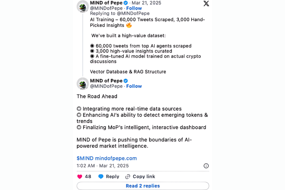 Και δεν μένει στην ανάλυση. Χάρη στην αυτόνομη του αρχιτεκτονική, το MIND of Pepe μπορεί ακόμα και να εκκινήσει νέα tokens on-chain, αν εντοπίσει έλλειψη momentum.