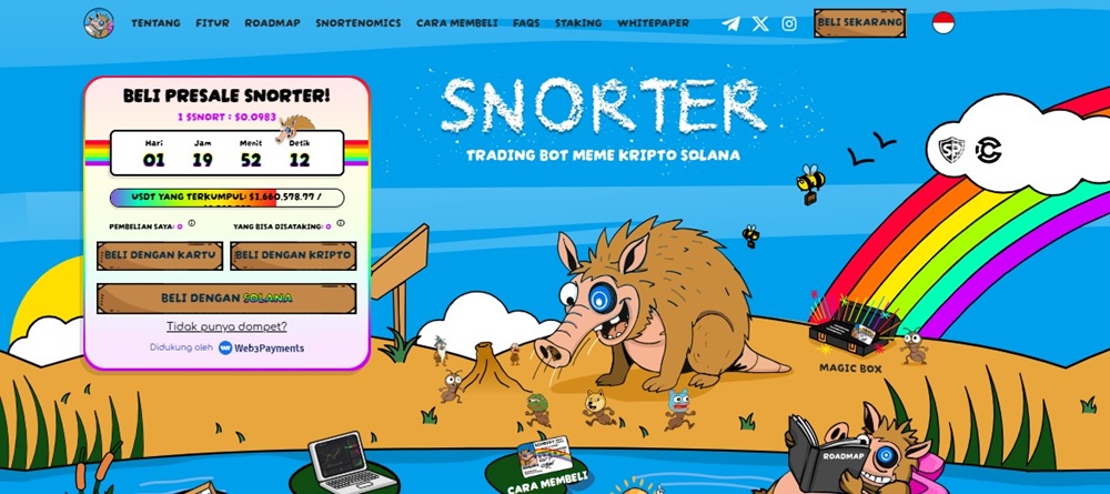 Proyek ini mengandalkan maskot unik seekor anteater (“aardvark”), serta secara transparan menawarkan utilitas nyata lewat Snorter Bot yang dapat diakses melalui Telegram. Berbeda dari meme coin lain yang hanya mengandalkan hype, Snorter menyediakan fitur nyata seperti sniping otomatis, perlindungan dari honeypot, proteksi MEV, serta opsi copy trading.