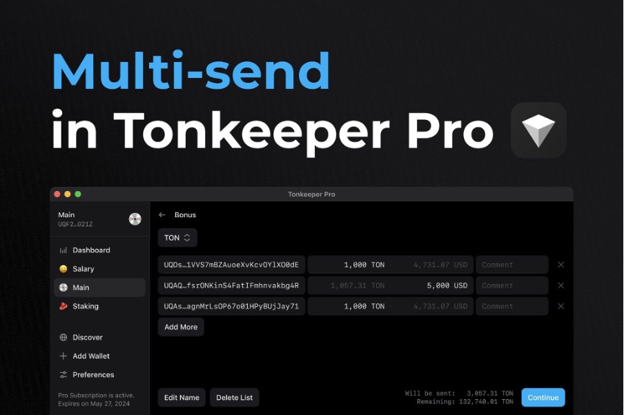 Tonkeeper Pro’s multi-send and multisig functionalities are well-suited for enterprises that have stepped beyond occasional token transfers. It could be a startup paying multiple contractors every month or a DAO overseeing a treasury. The multi-account feature can also help segment budgets by department or project, providing transparency and ease of auditing.