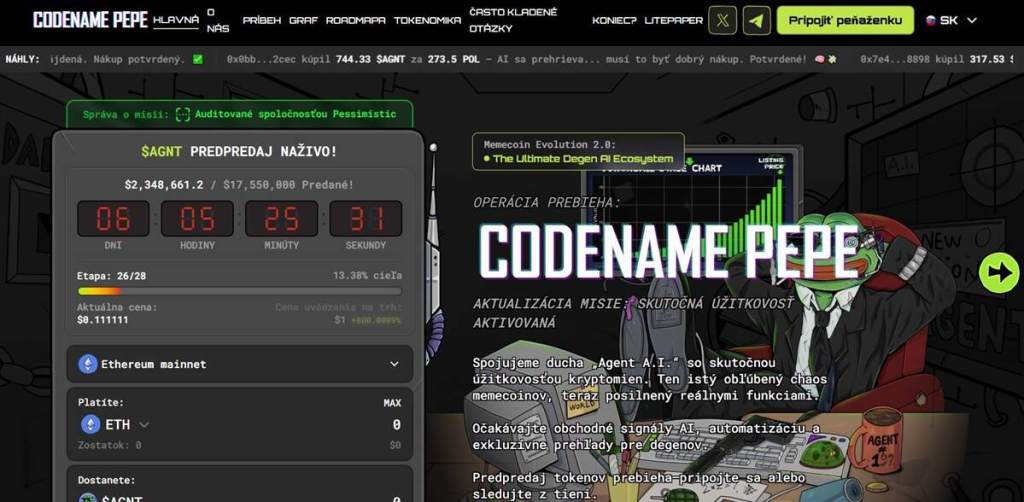 3. Codename Pepe ($AGNT) – Obchodná inteligencia poháňaná AI pre éru memecoinov