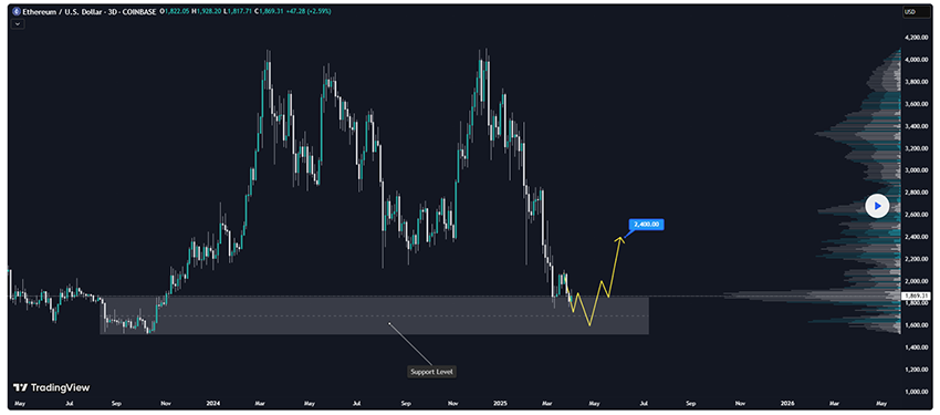 Technisch gezien is Ethereum uit een falling wedge gebroken. Dit patroon wijst vaak op een bullish vervolg. De koers lijkt op weg naar een hertest van de zone rond $2.250. Op dat niveau ligt een belangrijke golden cross die traders in de gaten houden.
