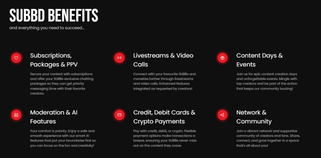SUBBD je první platforma svého druhu a je jedinečná zejména díky propojení prosperujícího trhu tvorby online obsahu s krypto světem. Nejen to ji však dělá unikátní. Trend využití umělé inteligence začíná pobývat obě tyto oblasti, a tak SUBBD staví právě na využití AI. Po plném spuštění plánuje funkce jako osobní AI asistent nebo AI creator.