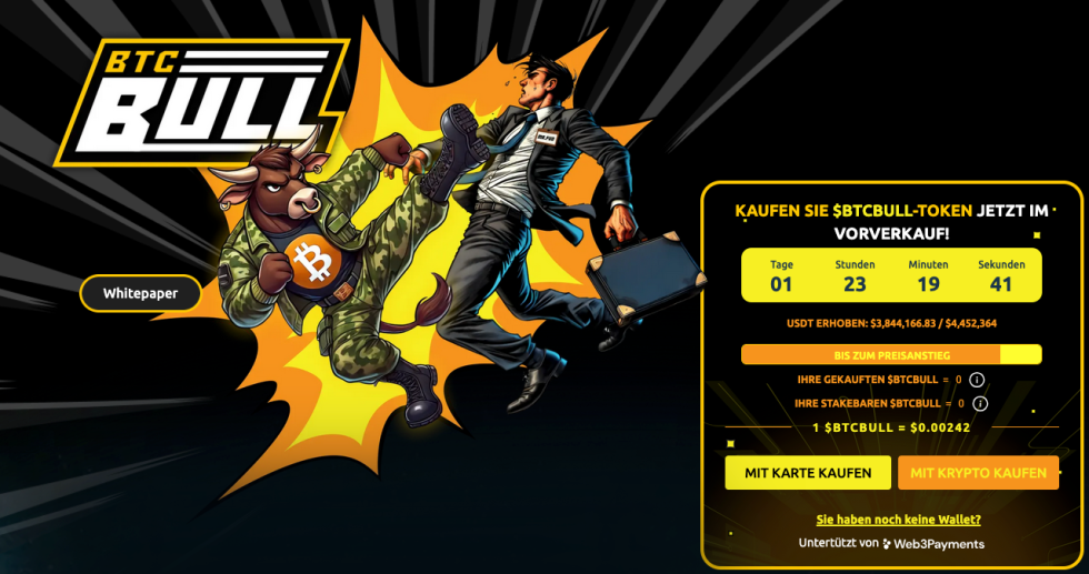 Der Coin wird dort für 0,00242 Dollar verkauft, und in den letzten Wochen kamen bereits über 3,8 Millionen Dollar an Investitionen von interessierten Anlegern zusammen. Besonders spannend ist der Airdrop-Mechanismus, mit dem BTCBULL eine Art Wette auf die zukünftige Entwicklung von Bitcoin ermöglicht. So sollen in Zukunft Airdrops an BTCBULL Holder ausgeschüttet werden, die echte Bitcoins erhalten, sobald BTC selbst Kursniveaus von 150.000 Dollar, 200.000 Dollar und darüber hinaus überschreitet.
