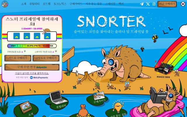 스노터 토큰(Snorter Token, $SNORT)에 의해 제공되는 스노터 봇은 특히 개인 트레이더들을 위해 설계된 텔레그램 네이티브 트레이딩 도구로서, 코인 고래들의 지배력을 우회하고 가장 기대가 되는 신규 밈코인을 손쉽게 거래할 수 있는 원스탑 솔루션을 제공한다.