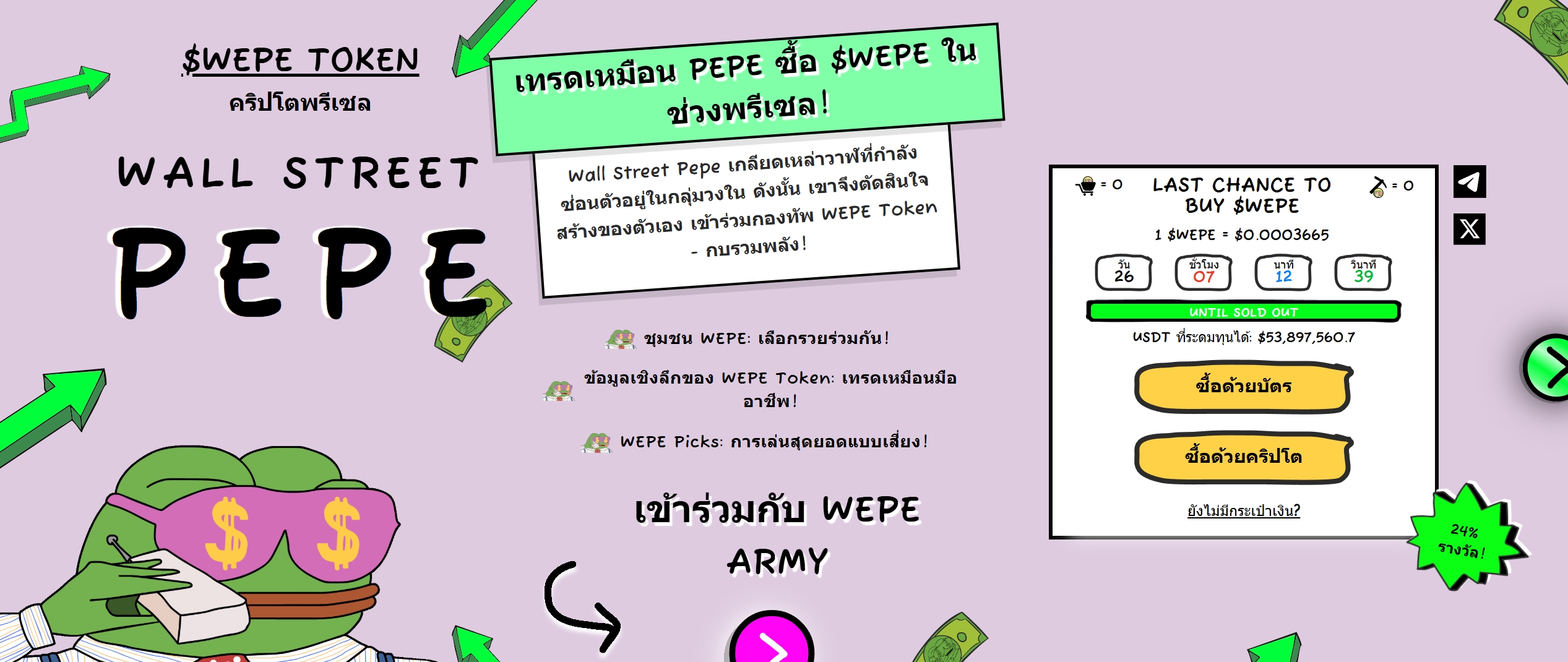ทั้งนี้ หากมีการพัฒนาโครงสร้างการลงทุนที่รองรับสถาบันมากขึ้นในอนาคต Pepe อาจกลายเป็นหนึ่งใน Meme Coin ที่ได้รับการพิจารณาจากสถาบันการเงิอย่างจริงจัง