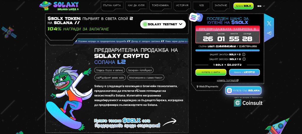 - Силна подкрепа от общността: Над 26 400 инвеститори вече са се присъединили към проекта, което свидетелства за нарастващото доверие към Solaxy.