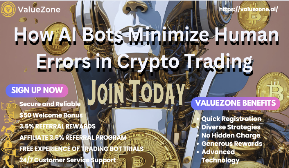AI trading bots are becoming essential tools for traders aiming to minimize human error and boost profitability in the fast-paced cryptocurrency market. By eliminating emotional decision-making, adhering strictly to proven strategies, and executing trades with speed and precision, AI bots help traders avoid common pitfalls associated with manual trading. With ValueZone AI, you can enjoy 24/7 automated, error-free trading, empowering you to make smarter, more profitable trades. Sign up today and take your trading to the next level!