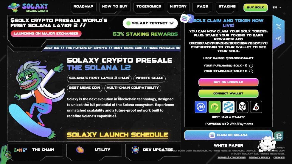 با این حال، بسیاری از پروژه های میم کوین در همین مرحله موفقیت بزرگی کسب کرده اند. برای مثال سولاکسی ($SOLX) که یک نمونه محبوب از میم کوین های جدید سولانا است، در پیش فروش خود بیش از ۵۵ میلیون دلار جذب سرمایه داشت.