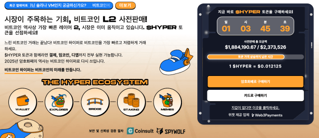 2. 비트코인 하이퍼($HYPER) – 더 빠른 거래와 낮은 수수료를 제공하는 최초의 비트코인 레이어-2 솔루션