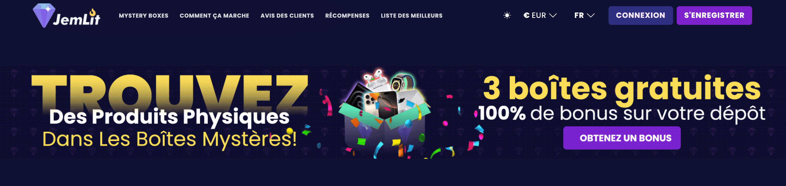 Avec plus de 1,425,126 utilisateurs à travers le monde, Jemlit débarque enfin en France et s’impose déjà comme le leader incontournable dans l’univers des boîtes mystères et des roues à cadeaux. Les avis et les différents commentaires postés par les utilisateurs sont très positif, et on comprend pourquoi.