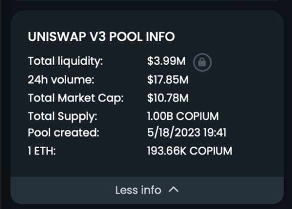 $COPIUM Uniswap V3 pool info, 18 May 2023