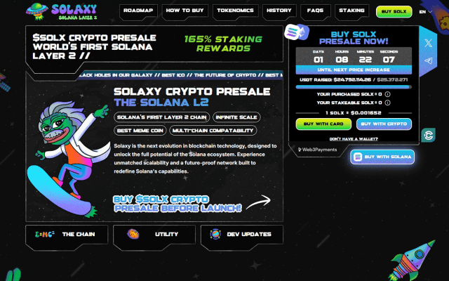 - Τεράστια επενδυτική ευκαιρία: Το presale του Solaxy ($SOLX) έχει ήδη συγκεντρώσει σχεδόν 25 εκατομμύρια, καθώς οι επενδυτές βλέπουν τις υψηλές προοπτικές του έργου.