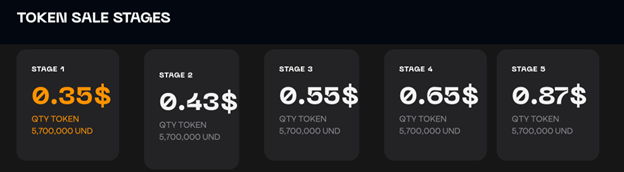 The presale price will continue to increase until hitting stage five, which will sell the token for $0.87. Therefore, the best time to purchase UND would be during the early stages.