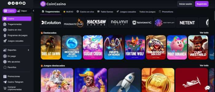 Para este ejemplo hemos tomado a CoinCasino como opción nº1. De modo que tendrías que pulsar sobre el link directo que dejamos en esta guía para que podamos llevarte a su web. Este proceso lo puedes seguir con cualquiera de los casinos de la lista, incluso simultáneamente.