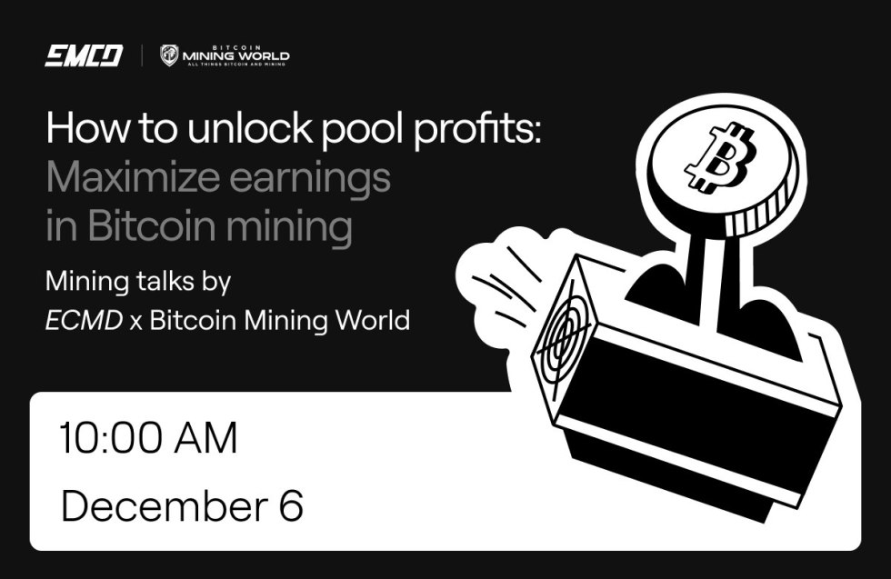 EMCD, a global leader in cryptocurrency mining solutions, is partnering with Bitcoin Mining World to host an exclusive online event, Mining Talks: How to Unlock Pool Profits, tailored to Bitcoin miners looking to maximize their earnings. The event, scheduled for December 6, 2024, is open to anyone interested in diving deeper into Bitcoin mining strategies, understanding reward models, and optimizing pool selection.