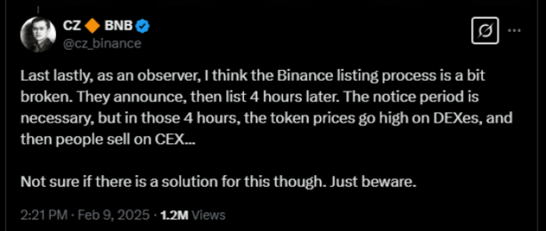 Tokens actively trading on DEXs tend to spike after a Binance listing is announced, then drop off after the token goes live on the CEX.