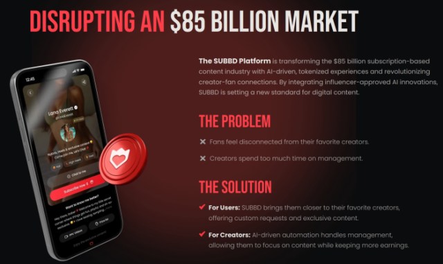 The $SUBBD token leverages the $85B-strong creator content industry, adds a splash of AI, a dash of crypto tokenization, and better, more direct engagement than ever before.