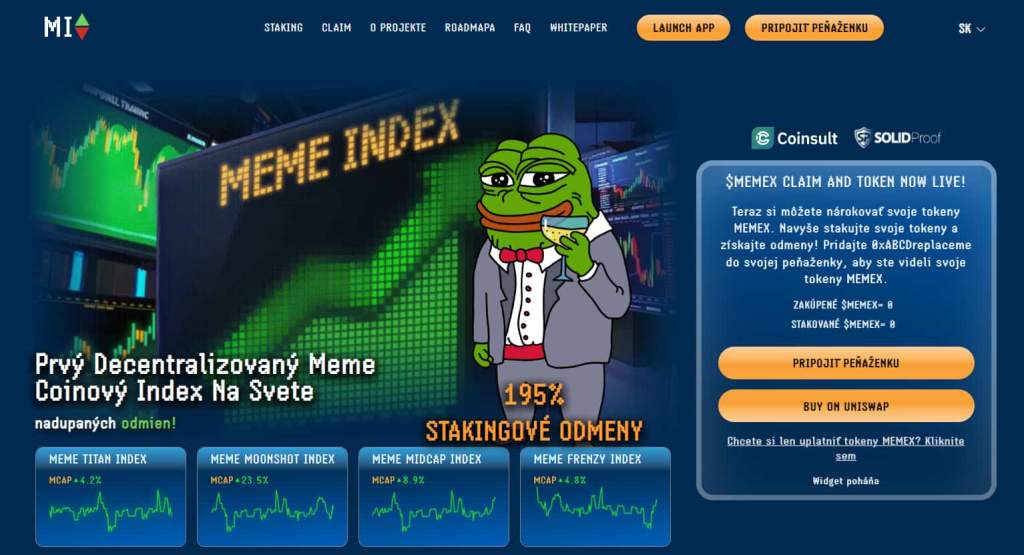 Meme Index jest obecnie w 6. fazie przedsprzedaży, z ceną 0,000000144 USD i przekroczonym progiem 5,9 mln USD, co pokazuje duże zaufanie inwestorów jeszcze przed oficjalnym debiutem. Smart kontrakt przeszedł audyt Coinsult i SolidProof bez wykrycia krytycznych lub wysokiego ryzyka błędów, co daje pewność i przejrzystość.