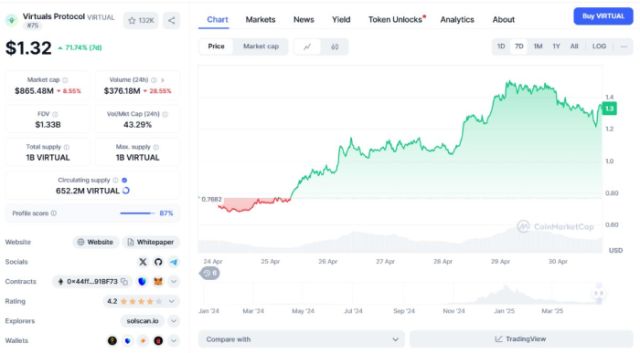 Gráfico de Virtuals Protocol. *Fuente: CoinMarketCap