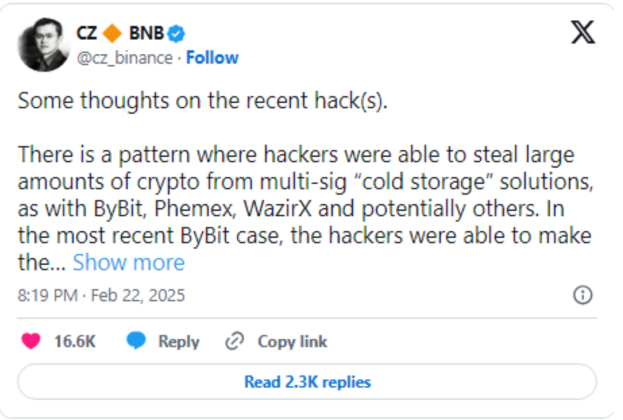 Этот случай демонстрирует, насколько продуманными становятся атаки на централизованные кошельки. Бывший руководитель биржи Binance Чанпэн Чжао (CZ) напомнил, что ранее аналогичные взломы произошли на WazirX и Phemex. При этом обе платформы использовали технологию мультиподписей.