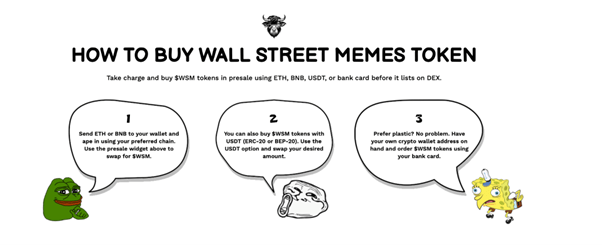 To take advantage of the discounts offered during the early stages, make sure you grab your tokens early. Here is how you can participate in the Wall Street Memes presale: