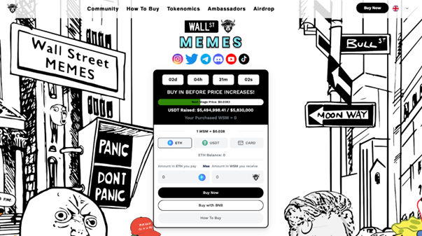 The presale of $WSM (Wall Street Memes) is moving ahead at an unprecedented pace as FOMO fuels despite the SEC turmoil. With most assets plunging, investors are moving their funds to promising new cryptocurrencies that are awaiting launches later this year.