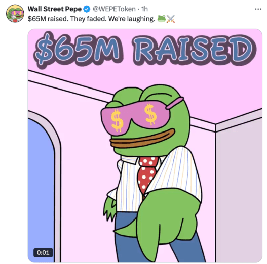 즉 월스트리트 페페는 헤지펀드 사기꾼과 인플루언서 주도의 펌프앤덤프, 고래 조작단들의 활동에 마침표를 찍게 할 것이다.