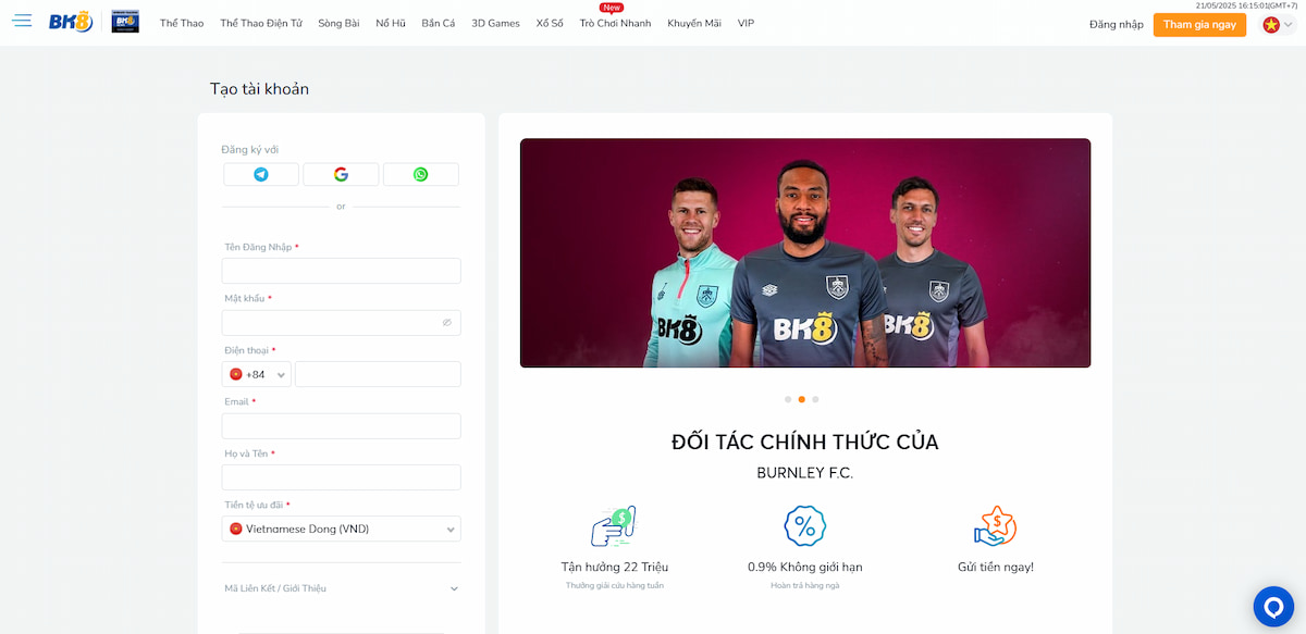 - Truy cập đúng link vào nhà cái chính thống, không bị chặn và nhấn nút “Đăng ký/ Tham gia ngay/ Sign Up”