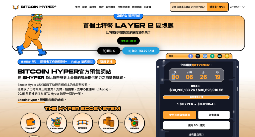 3. Bitcoin Hyper (HYPER) – 具備比特幣第二層功能的迷因幣