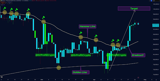 In an X post, Doctor Profit stated that the next target for the Bitcoin price is $100,000, given the current momentum and the break above the hammer line at around $88,000. He also indicated that BTC could sustain this bullish momentum after it reaches $100,000 and rally to a new all-time high (ATH) in the coming weeks.
