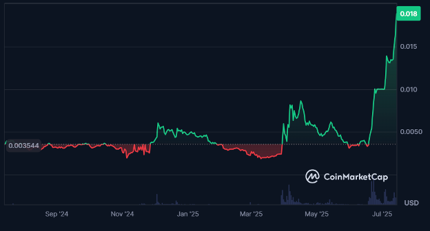 • July: Picking up momentum again, moving past $0.010 and holding that level for the first time in the rally, before climbing further to the $0.014–$0.0187 range driven by the Q2 burn and sustained community growth.