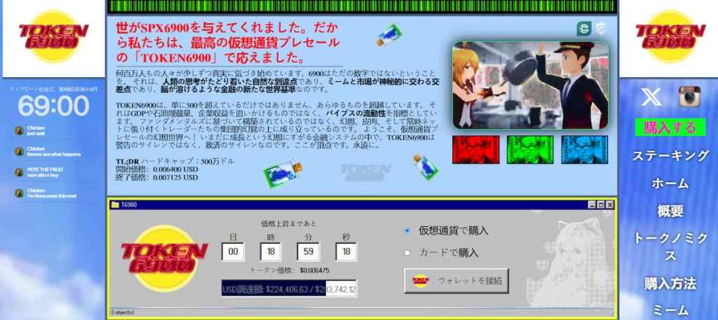TOKEN6900($T6900)は一般的なアルトコインではありません。ミームコインとしての本質を隠さず、AIなどの流行ワードも使わず、偽りのロードマップも持たない。仮想通貨おすすめとしても非常に注目されています。