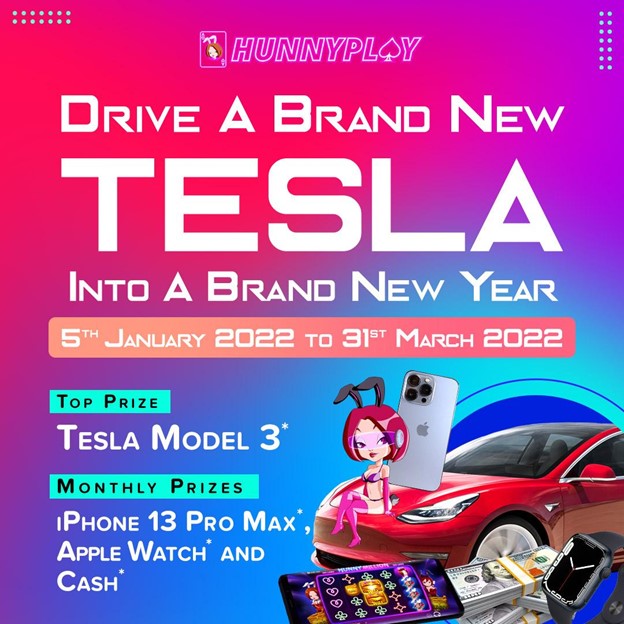 It’s so easy to enter to win this amazing Tesla Model 3. Just play any slot games or live table games at HunnyPlay from 5th January 2022 to 31st March 2022 to enter the tournament and feel awesome winning from this new crypto casino. So enter now and keep your fingers crossed Tesla Model 3, iPhone 13 Pro Max, Apple Watch, and cash come home with you.