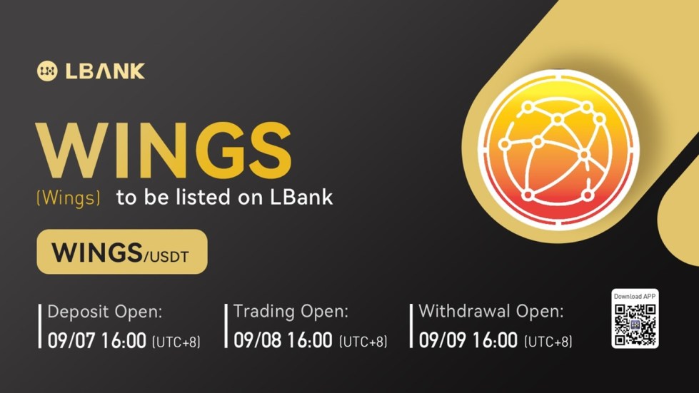 INTERNET CITY, DUBAI, Sep. 8, 2022 – LBank Exchange, a global digital asset trading platform, has listed Wings (WINGS) on September 8, 2022. For all users of LBank Exchange, the WINGS/USDT trading pair is now officially available for trading.